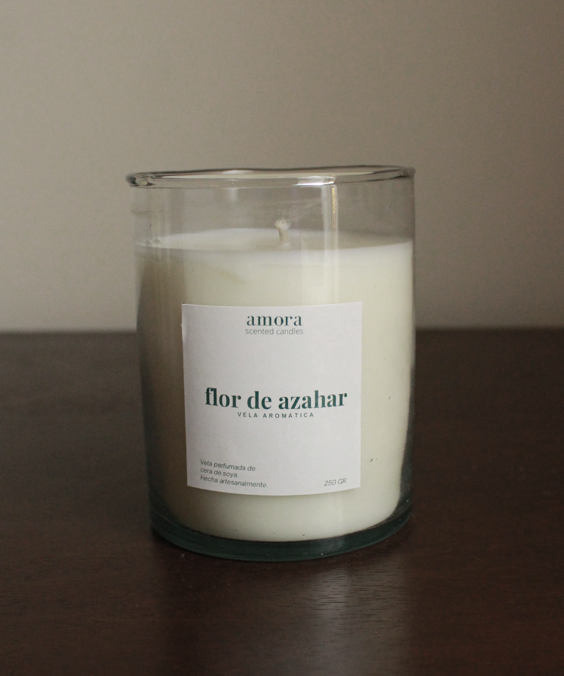 1 Vela de cera de soya perfumada con aroma flor de azahar.
